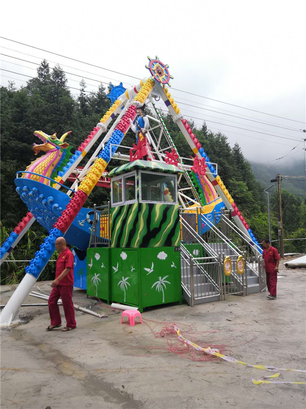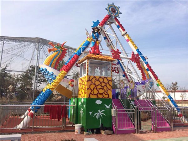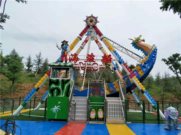 24座海盜船游樂設施因其外形酷似古時海盜船,有時刻準備戰(zhàn)斗的海盜船長,有眺望遠方的水手,故得此名。是一款水平軸反復擺動類的經(jīng)典游樂設備,海盜船啟動后從緩慢擺動慢慢的急速擺動,游客乘坐于海盜船之上,隨著由緩至急的反復擺動,猶如置身驚濤駭浪的大海之中,時而沖上浪峰,時而跌入谷底,驚險刺激,挑戰(zhàn)人們心理承受能力的極限,有趣刺激,精美的外觀,深受游客的喜愛。