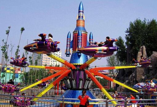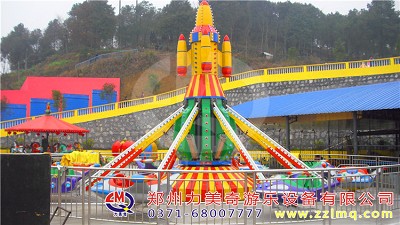 自控飛機(jī)是由機(jī)械、氣動(dòng)與油壓和電氣系統(tǒng)組成,是一種繞垂直軸中心旋轉(zhuǎn)、升降自由的游樂設(shè)備。飛機(jī)圍繞中心火箭旋轉(zhuǎn),并逐漸上升,游客在飛行中緊握操縱桿隨意升降,互相追逐、射擊,形象逼真的空戰(zhàn)聲光效果,令人樂而忘返,該游樂設(shè)備不但性能優(yōu)異,操作簡單,而且新穎的造型、華麗迷人的彩燈裝飾,逼真刺激的空戰(zhàn)音響效果。它具有高空云駕之驚險(xiǎn),自由之悠閑,是一種游客可自己控制升降的現(xiàn)代游樂設(shè)施。