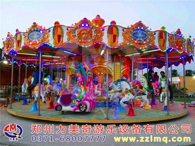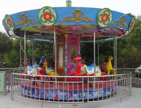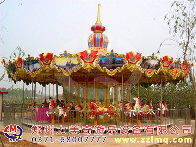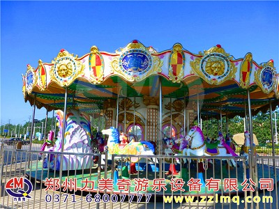游樂設備旋轉木馬或回轉木馬游樂場機動游戲的一種,即旋轉大平臺上有裝飾成木馬且上下移動的座位供游客乘坐。起初記錄的旋轉木馬出現于拜占庭帝國時期。約1860年歐洲出現名列前茅個以蒸汽推動的旋轉木馬。旋轉木馬成為每個大人孩子心中的童話世界不可缺少的裝飾,如今在各大小游戲場、商場等地方皆有各式旋轉木馬。